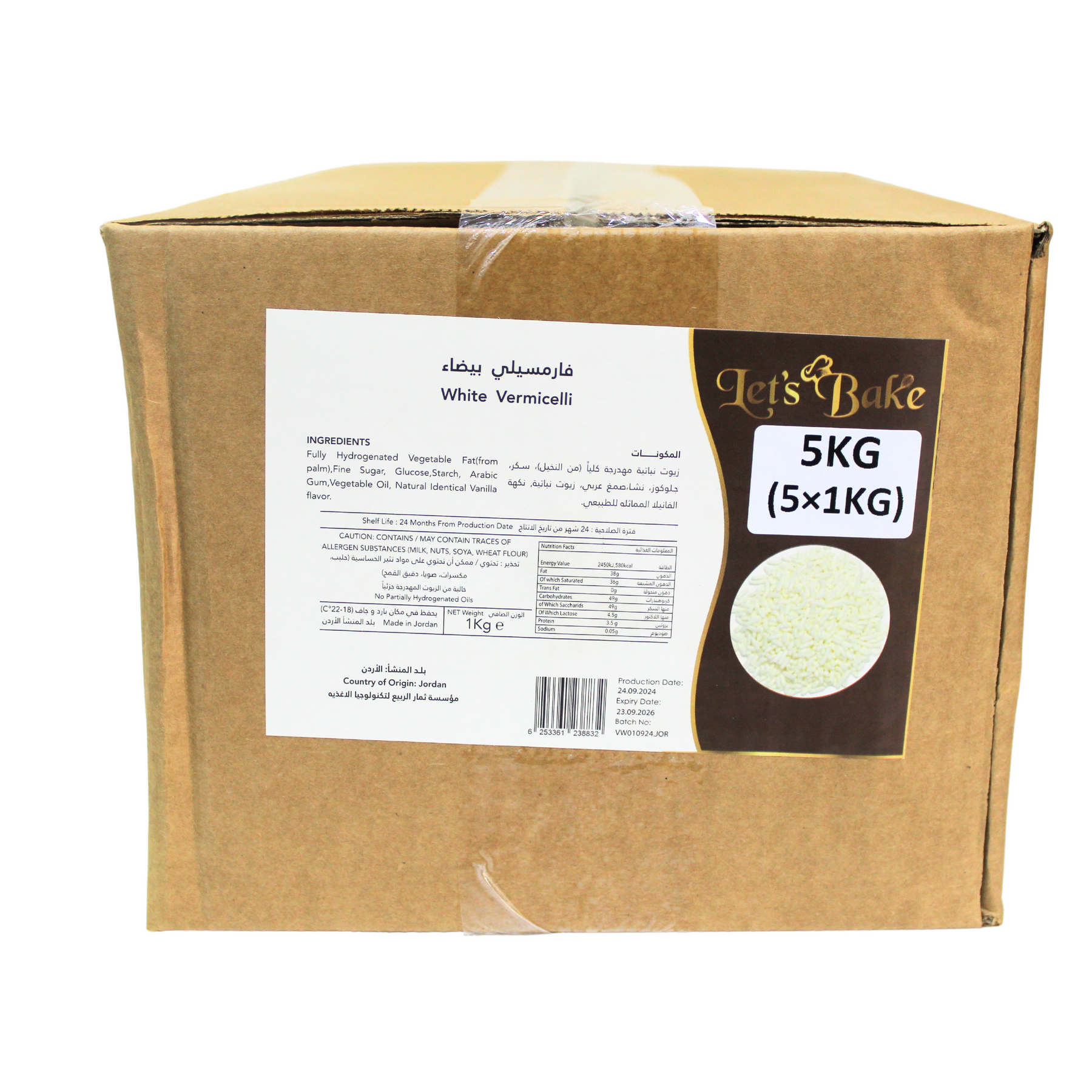 Add a touch of elegance and subtle sweetness to your desserts with Let’s Bake White Vermicelli. Made in Jordan with high-quality ingredients and natural vanilla flavor, this fine, crisp topping is perfect for decorating cakes, cupcakes, cookies, truffles, and more.